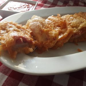 Ingredientes para 4 tragaldabas 1 o 2 solomillos de cerdo 300 gr de jamón serrano 300 gr de queso en lonchas tipo Gouda 1 huevo