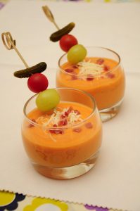 Autora: Marisa Ventura Ingredientes para 8 ó 10 comensales 1 kilo de tomates 1 mango Un ajo pequeño Una pizca de pimentón de La Vera Aceite de