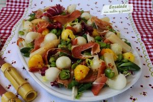ENSALADA DE MELÓN CON JAMON, QUESO Y NUECES